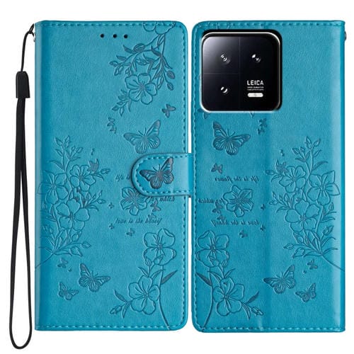 Para Xiaomi 13 Pro Funda de Cuero para Teléfono con Mariposas y Flores (Azul)