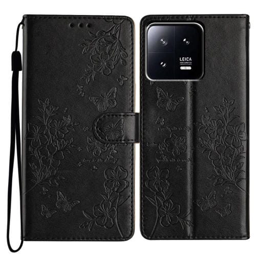 Para Xiaomi 13 Pro Funda de Cuero para Teléfono con Mariposas y Flores (Negro)
