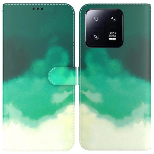 Para Xiaomi 13 Pro Funda de Teléfono con Tapa de Cuero con Patrón de Acuarela (Verde Cian)