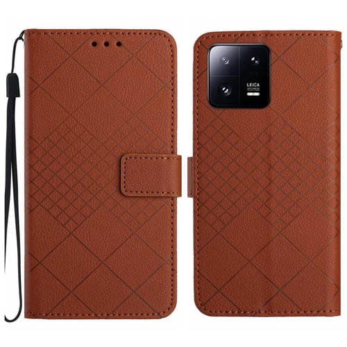 Para Xiaomi 13 Pro Funda de Teléfono de Cuero con Textura de Rejilla Rómbica (Marrón)