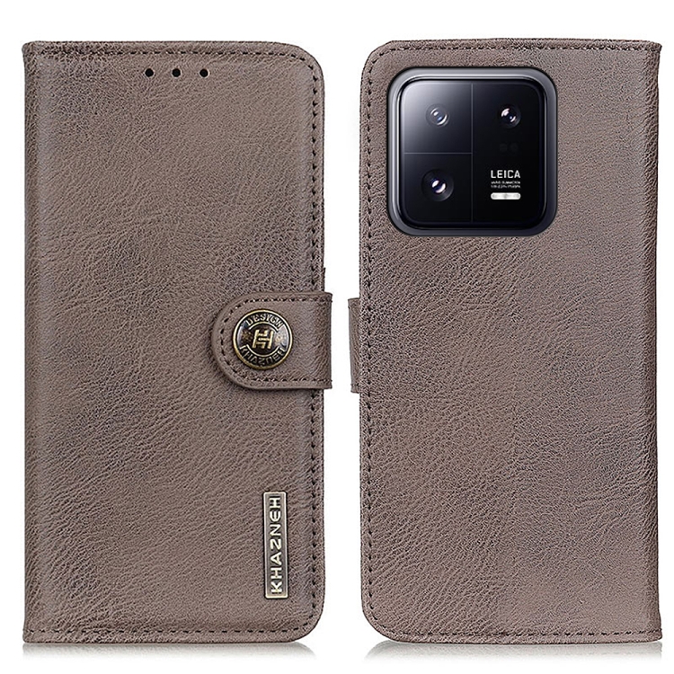 Para Xiaomi 13 Pro Khazneh Funda de Teléfono de Cuero con Textura de Piel de Vaca (Caqui)