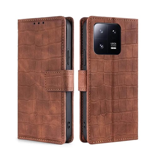 Para Xiaomi 13 Pro Skin Feel Cocodrilo Cierre Magnético Funda de Cuero para Teléfono (Marrón)