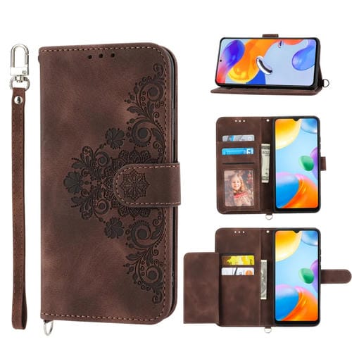 Para Xiaomi 13 Pro Skin-Feel Flowers Funda de Cuero con Billetera En Relieve para Teléfono (Marrón)