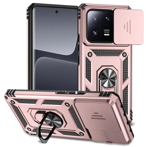 Para Xiaomi 13 Pro Sliding Camshield Holder Funda para Teléfono (Oro Rosa)