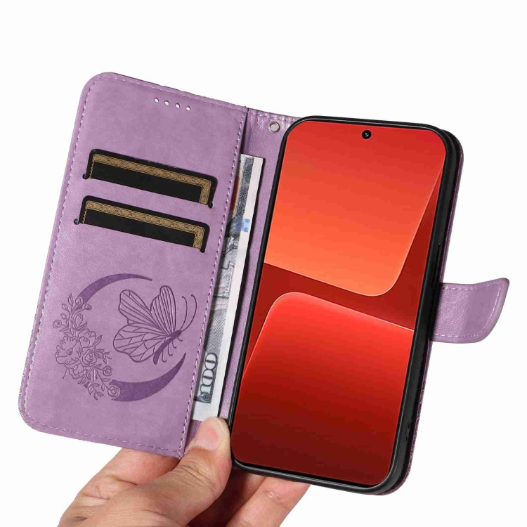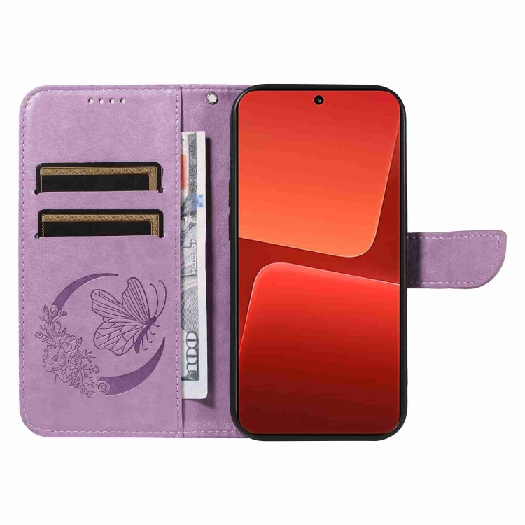 Para Xiaomi 13 Swallowtail Butterfly Funda de Teléfono de Cuero En Relieve (Púrpura)