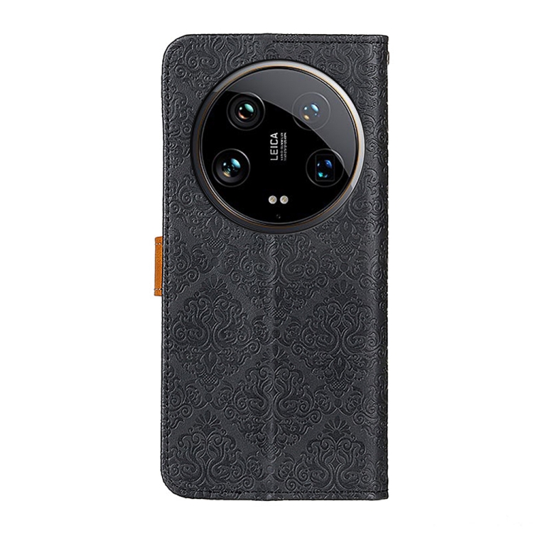 Para Xiaomi 14 Funda De Teléfono De Cuero Con Relieve Floral Ultra Europeo (Negro)