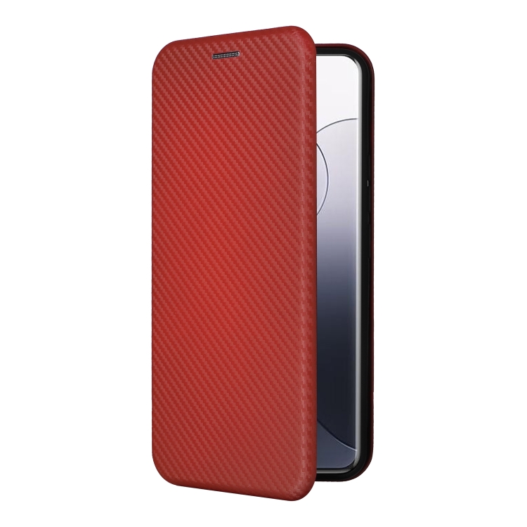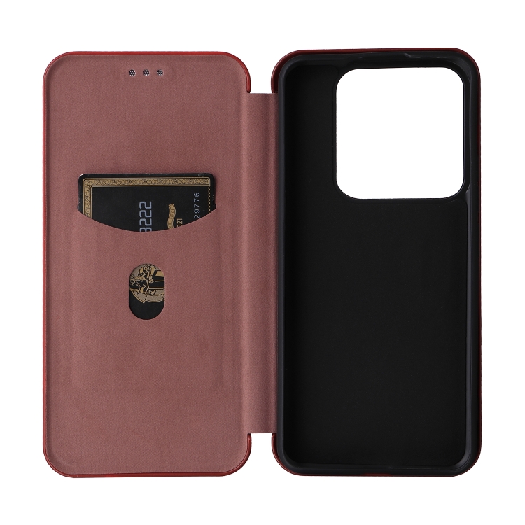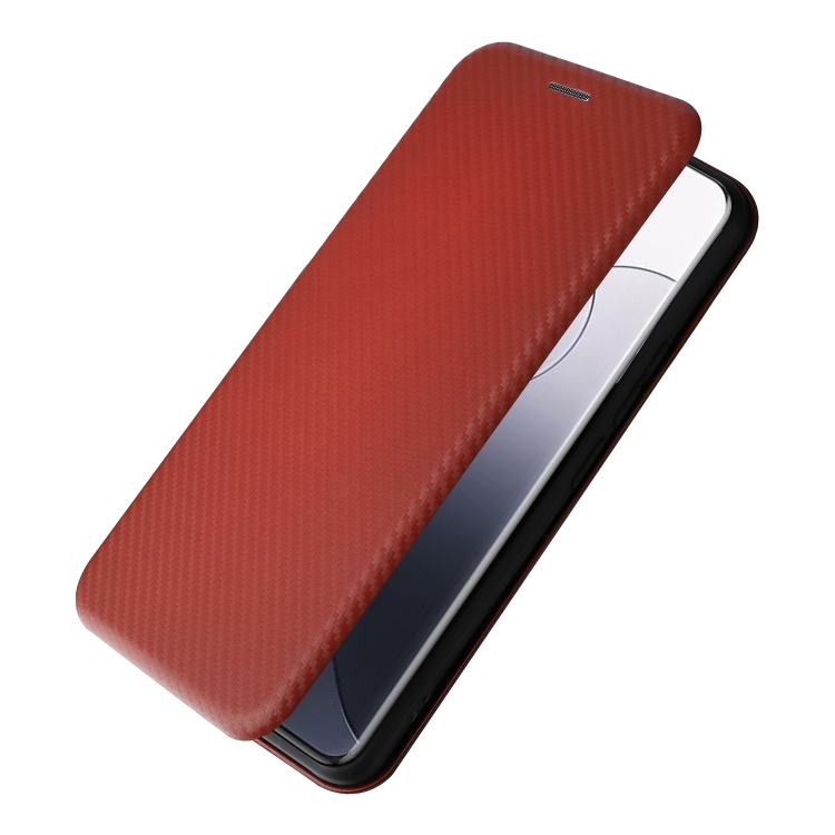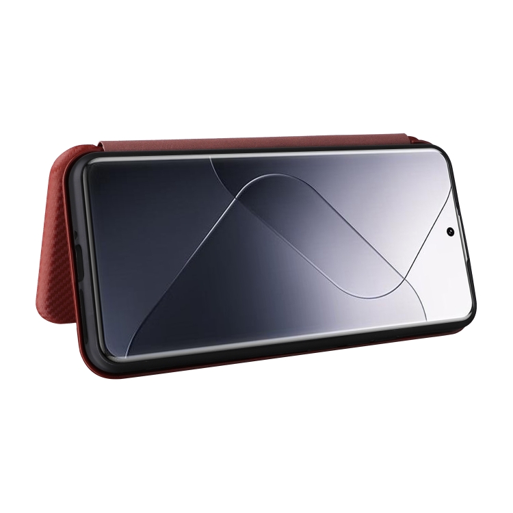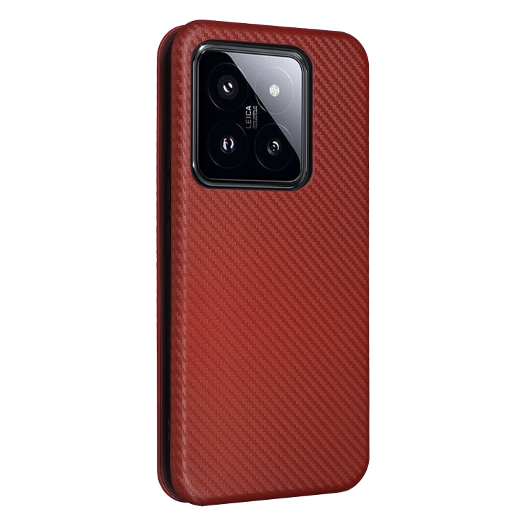 Para Xiaomi 14 Funda De Teléfono De Cuero Con Tapa Con Textura De Fibra De Carbono (Marrón)