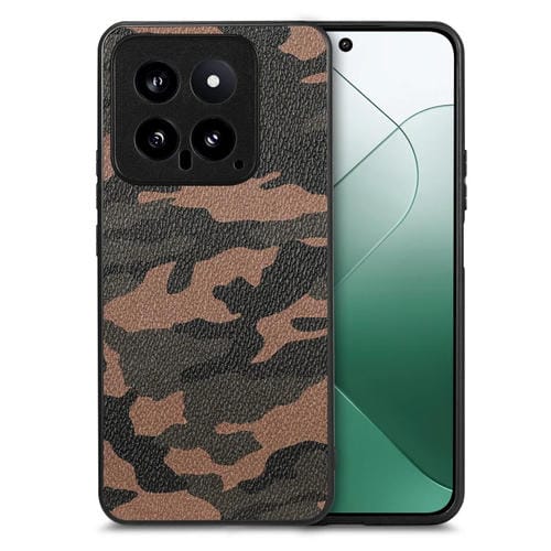 Para Xiaomi 14 Funda Trasera De Cuero De Camuflaje Retro (Marrón)