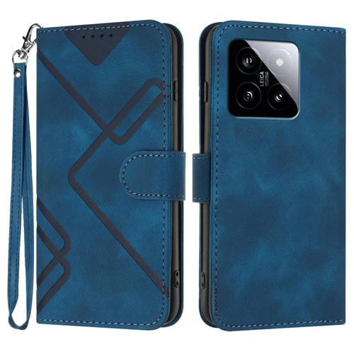Para Xiaomi 14 Line Pattern Skin Feel Funda De Cuero Para Teléfono (Azul Real)