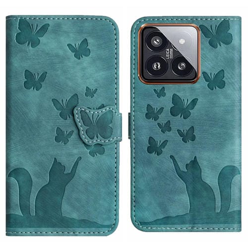 Para Xiaomi 14 Pro Butterfly Cat Funda De Teléfono De Cuero Con Tapa En Relieve (Wathet)