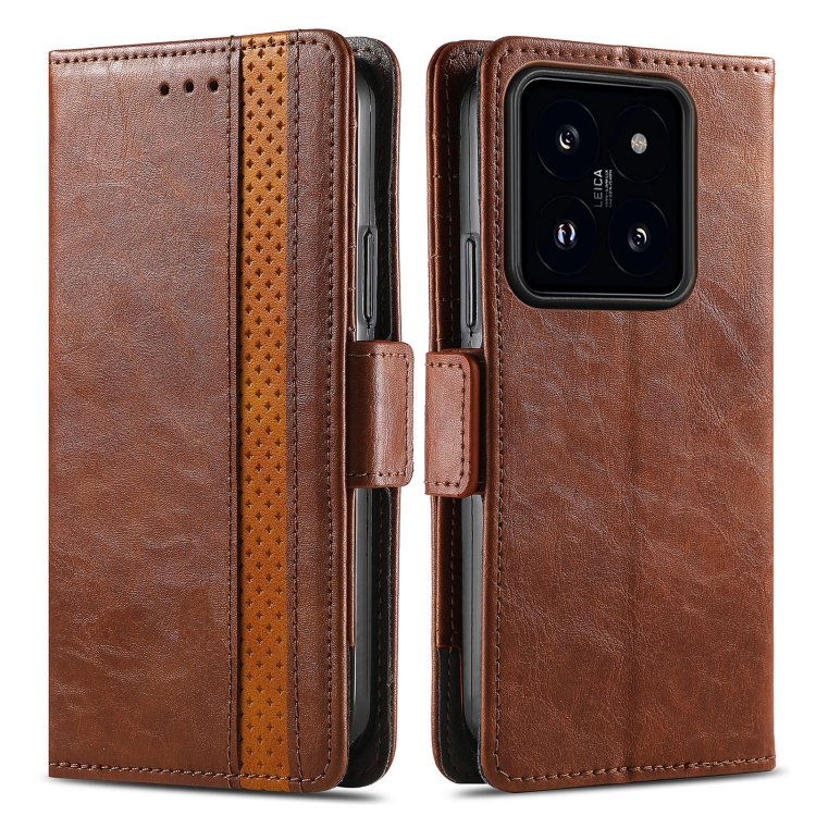 Para Xiaomi 14 Pro Caseneo Splicing Funda De Cuero Para Teléfono Con Hebilla Magnética Dual (Marrón)