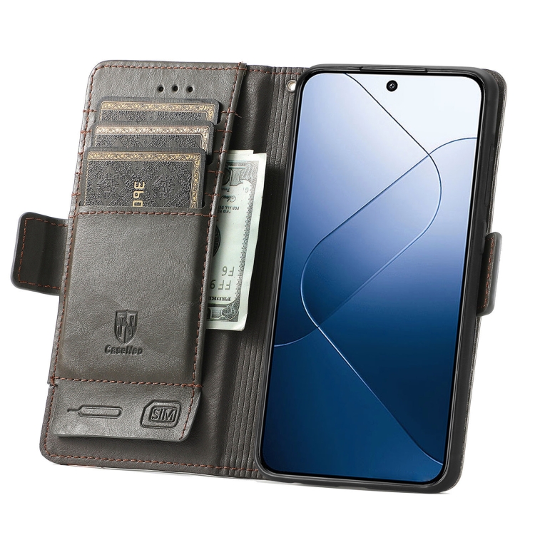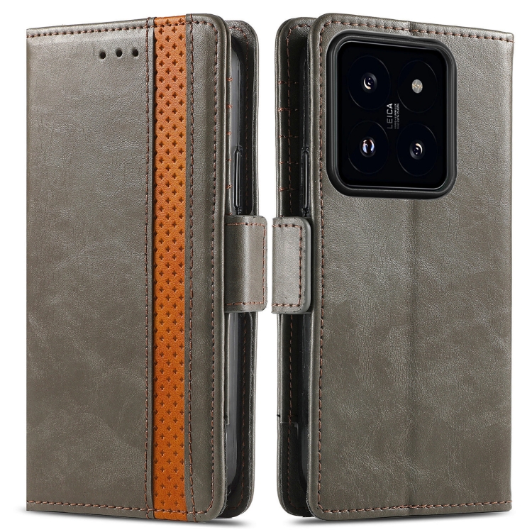 Para Xiaomi 14 Pro Caseneo Splicing Funda De Teléfono De Cuero Con Hebilla Magnética Dual (Gris)