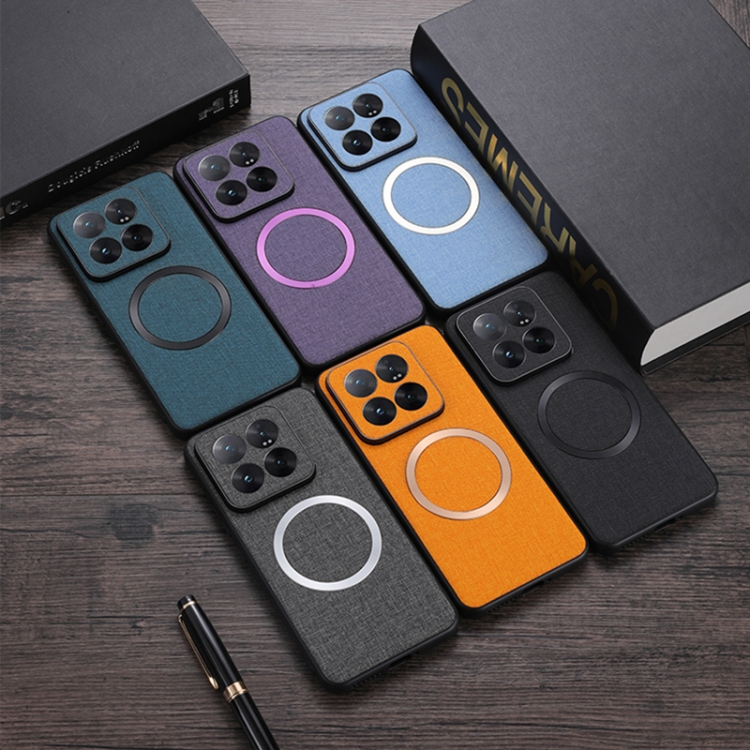 Para Xiaomi 14 Pro Cd Funda Para Teléfono Pu Con Textura De Tela Magnética (Verde)
