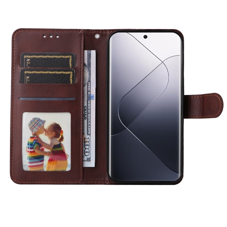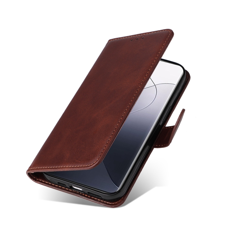Para Xiaomi 14 Pro Classic Calf Texture Flip Funda De Cuero Para Teléfono (Marrón)