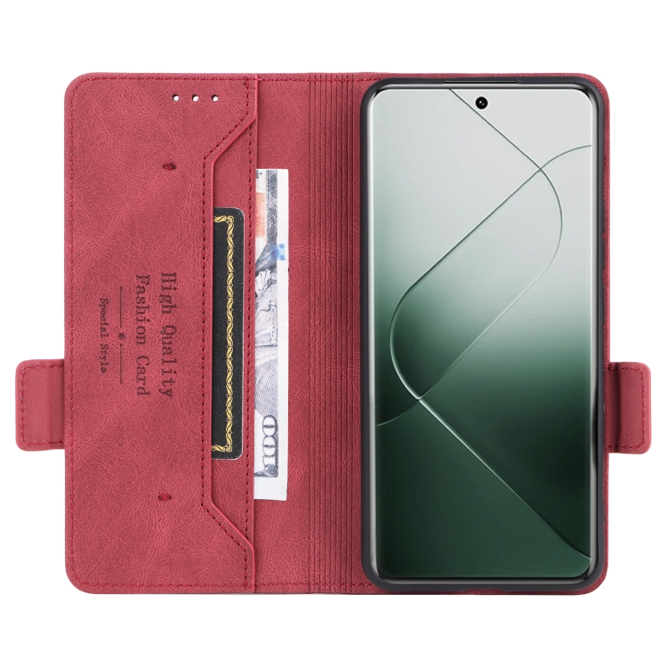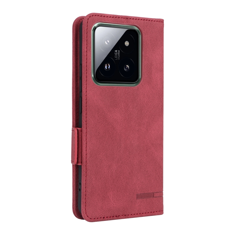 Para Xiaomi 14 Pro Funda De Cuero Para Teléfono Con Cierre Magnético (Rojo)