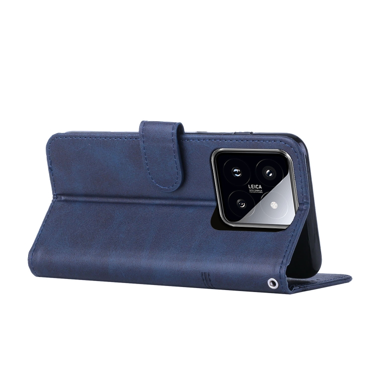 Para Xiaomi 14 Pro Funda De Teléfono De Cuero Con Hebilla Con Textura De Becerro Con Costura (Azul)