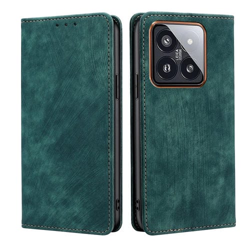 Para Xiaomi 14 Pro Rfid Cepillo Antirrobo Funda De Cuero Magnética Para Teléfono (Verde)