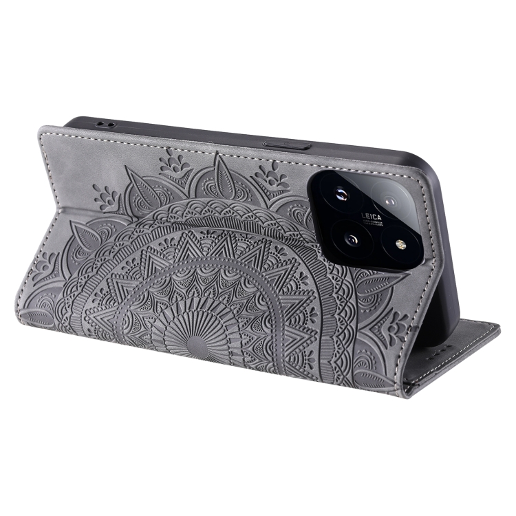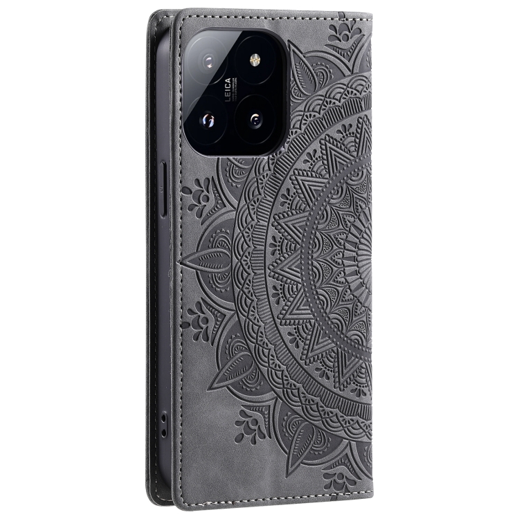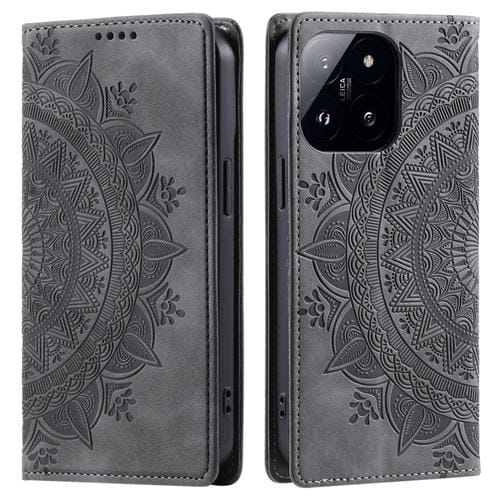 Para Xiaomi 14 Pro Totem Funda De Cuero Magnética En Relieve Para Teléfono (Gris)