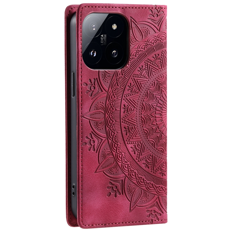 Para Xiaomi 14 Pro Totem Funda De Cuero Magnética En Relieve Para Teléfono (Rojo)