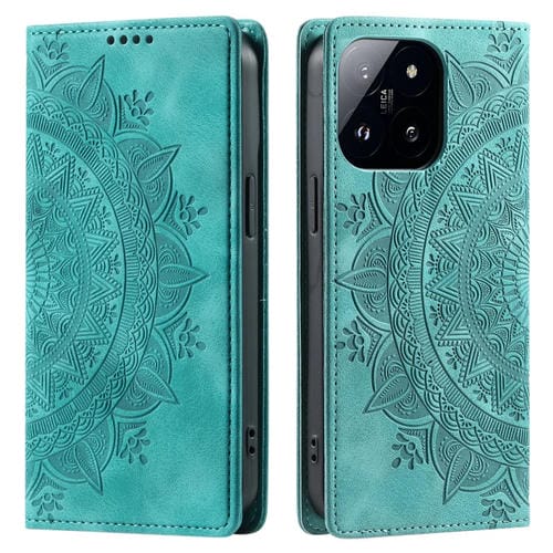 Para Xiaomi 14 Pro Totem Funda De Cuero Magnética En Relieve Para Teléfono (Verde)