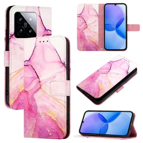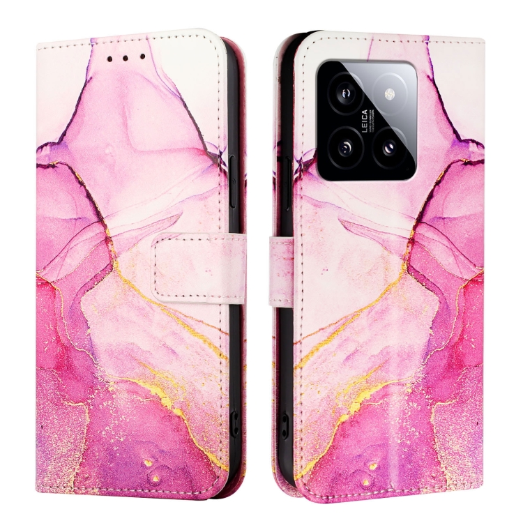 Para Xiaomi 14 Pt003 Funda De Teléfono De Cuero Con Tapa Con Patrón De Mármol (Oro Rosa Púrpura)