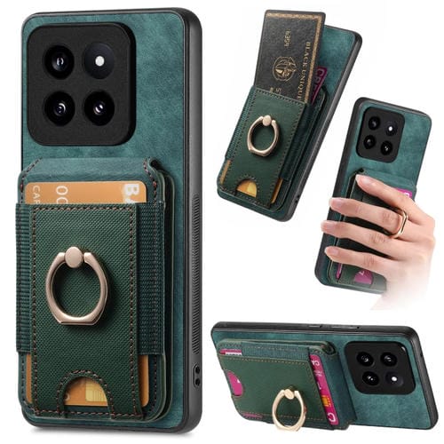 Para Xiaomi 14 Retro Splitable Magnetic Stand Card Bag Funda De Cuero Para Teléfono (Verde)