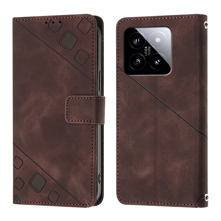 Para Xiaomi 14 Skin Feel Funda De Cuero Para Teléfono En Relieve (Marrón)