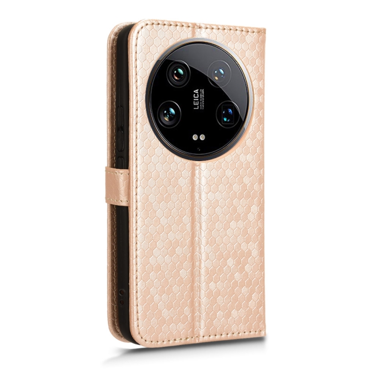 Para Xiaomi 14 Ultra Honeycomb Dot Texture Funda De Cuero Para Teléfono (Dorado)
