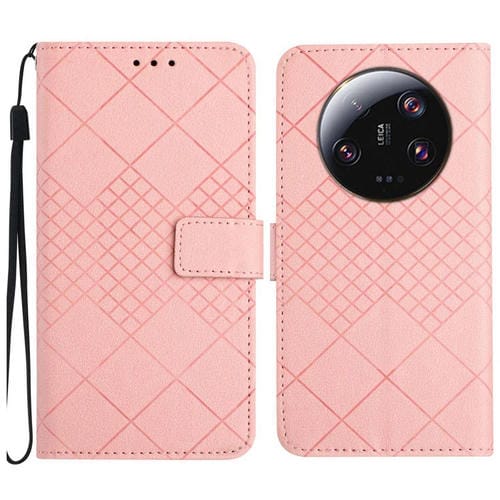 Para Xiaomi 14 Ultra Rhombic Grid Texture Funda De Cuero Para Teléfono (Rosa)