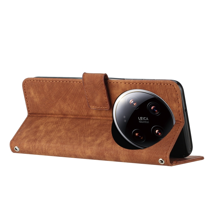 Para Xiaomi 14 Ultra Skin Feel Funda De Cuero Con Patrón De Rayas Y Cordón Largo (Marrón)