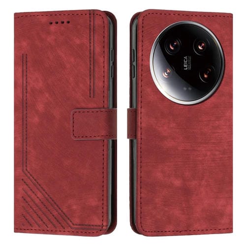 Para Xiaomi 14 Ultra Skin Feel Funda De Cuero Con Patrón De Rayas Y Cordón Largo (Rojo)