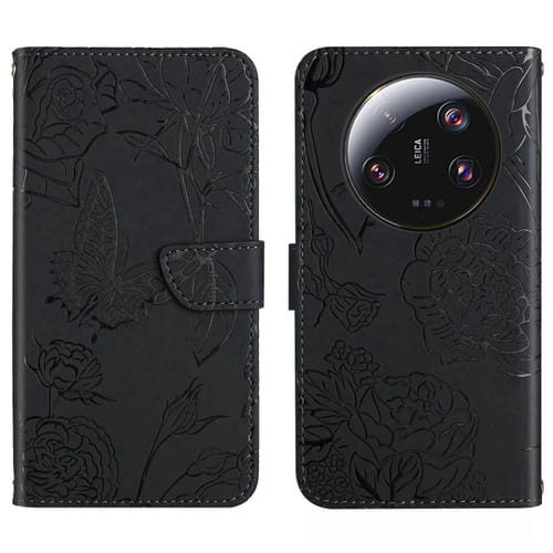Para Xiaomi 14 Ultra Skin Feel Funda De Teléfono De Cuero Con Tapa En Relieve De Mariposa (Negro)