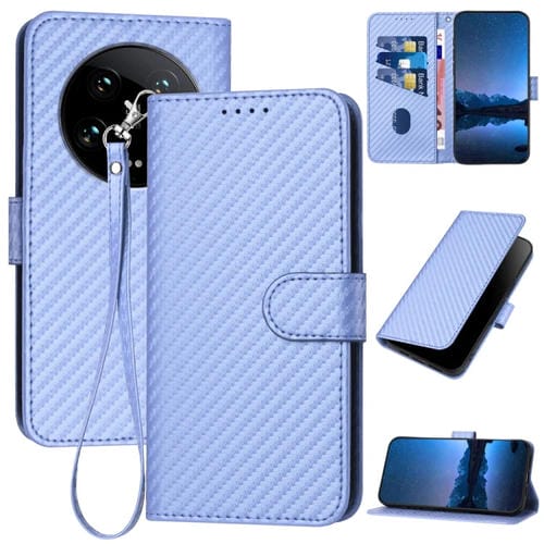 Para Xiaomi 14 Ultra Yx0070 Funda De Cuero Con Hebilla De Fibra De Carbono Y Cordón (Púrpura Claro)