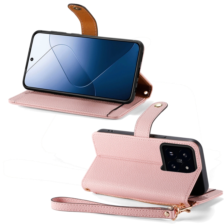 Para Xiaomi 14Pro Love Zipper Lanyard Funda De Cuero Para Teléfono (Rosa)