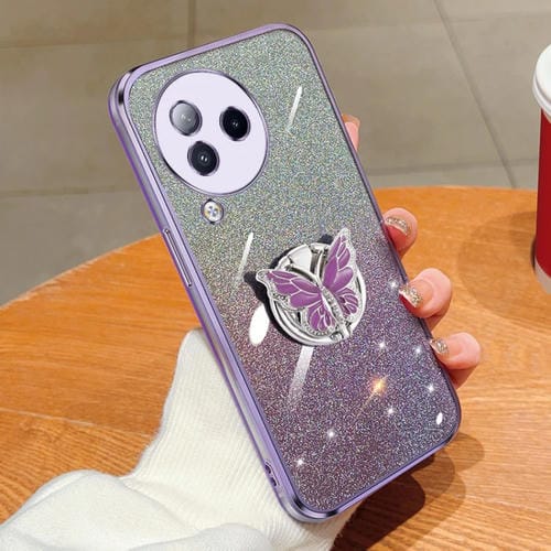 Para Xiaomi Civi 3 Funda para Teléfono de TPU con Soporte de Mariposa con Brillo Degradado Plateado (Púrpura)