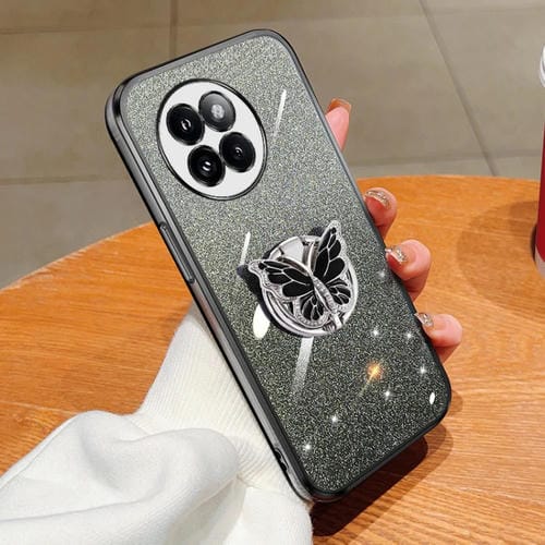 Para Xiaomi Civi 4 Pro Funda para Teléfono de TPU con Soporte de Mariposa con Brillo Degradado Plateado (Negro)