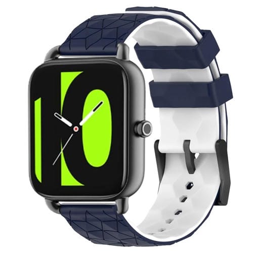 Banda de Reloj de Silicona para Xiaomi Haylou Rs4 Ls12 22mm Patrón de Fútbol (Azul Medianoche + Blanco)