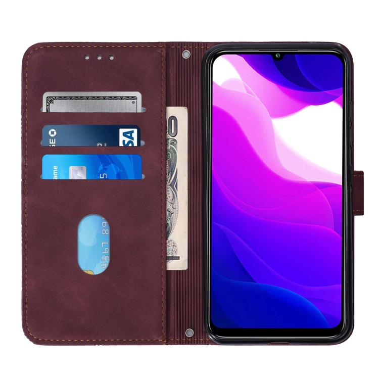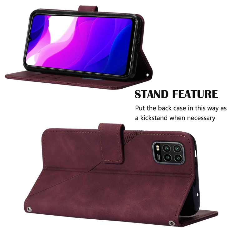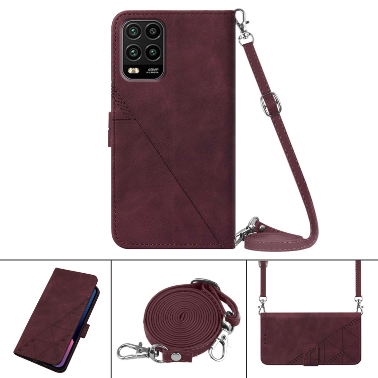 Para Xiaomi MI 10 Lite 5G Crossbody 3D Funda de cuero con goma 3D (Rojo del vino)