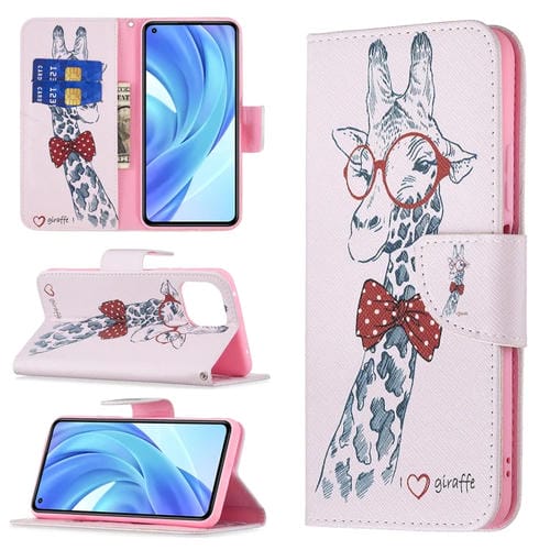 Para Xiaomi Mi 11 Lite Patrón de Dibujo de Color Horizontal Flip Funda de Cuero con Soporte y Ranuras para Tarjeta y Billetera (Venado)