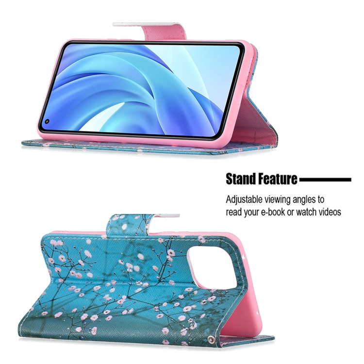 Para Xiaomi Mi 11 Lite Patrón de Dibujo de Color Patrón de Cuero Horizontal Flip Funda con Soporte y Ranuras para Tarjetas (Plum Blossom)