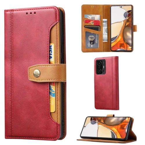 Para Xiaomi Mi 11T / Mi 11T Pro Texture Texture Doble Dow Dowt Clasp Horizontal Funda de Cuero con Marco y Soporte y Tragamonedas y Billetera (Rojo)