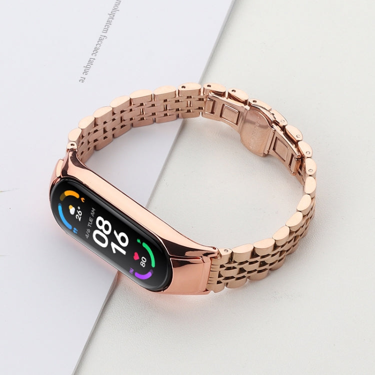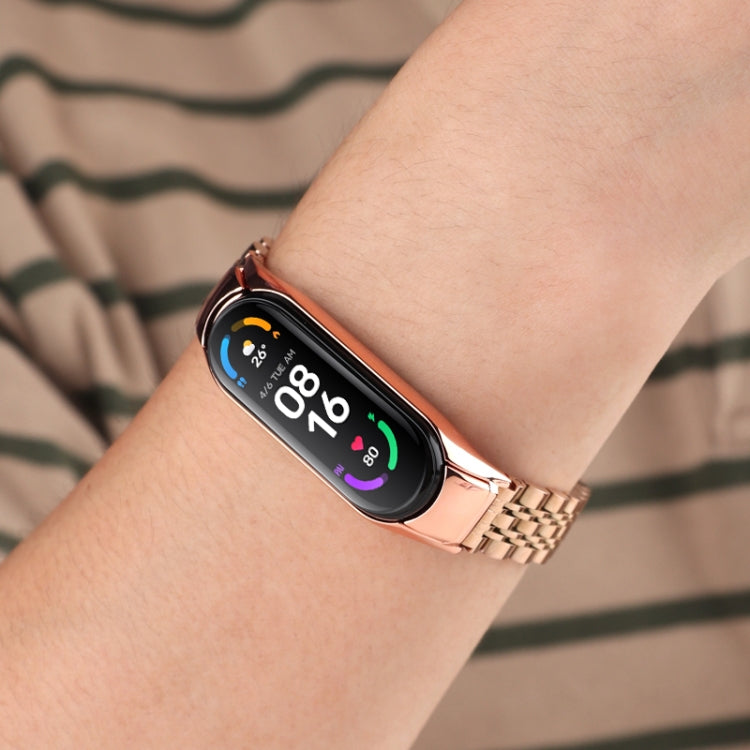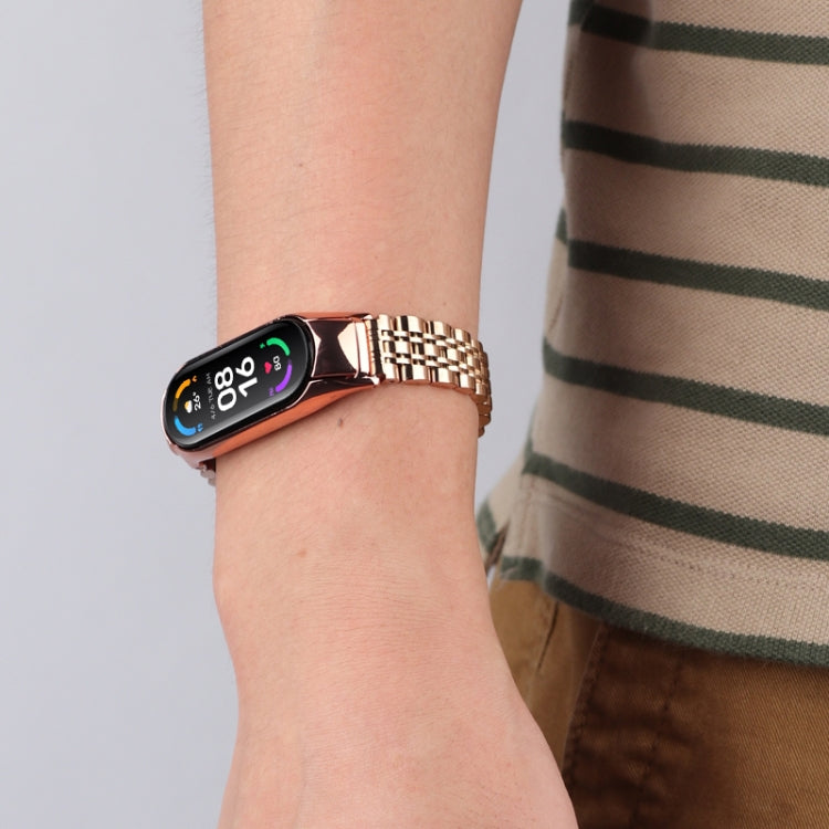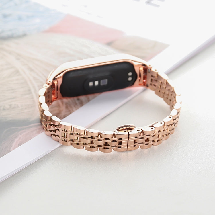 Para Xiaomi Mi Band 4/3 Band de reloj de acero inoxidable de siete cuentas (oro rosa)