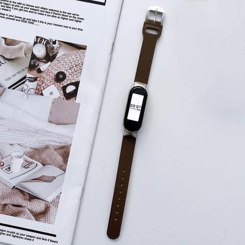 Correa de Cuero para Xiaomi Mi Band 5 y 6 con 8 Hebillas (Caqui)