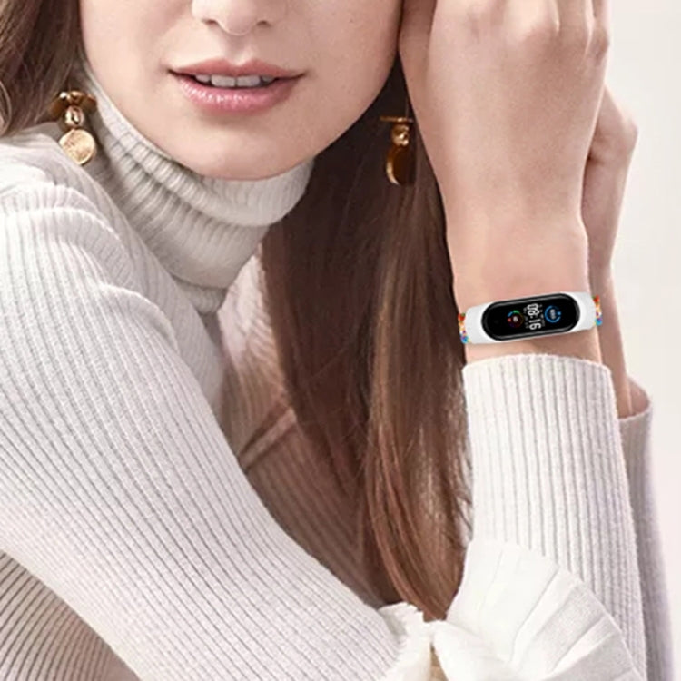 Para Xiaomi Mi Band 6/5/4/3 Band de reloj de elasticidad trenzada ajustable (blanco rosa)