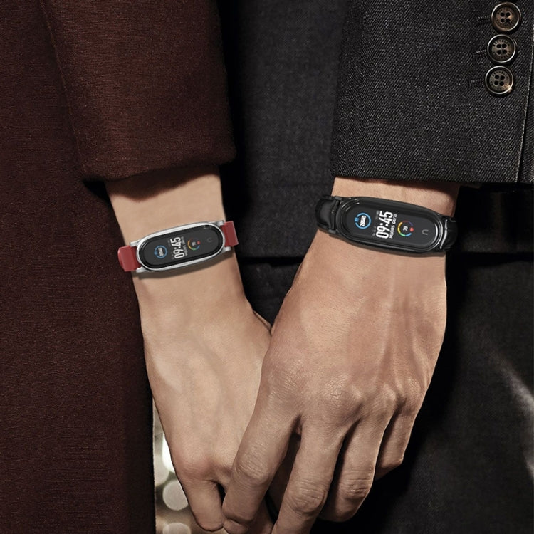 Para Xiaomi Mi Band 6/5/4/3 Mijobs Metal Case Crazy Horse Texture PU Microfibra Plus Watch Band (oro rosa rojo)