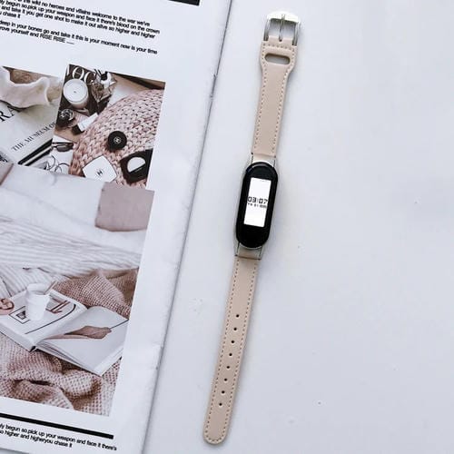Correa de Reloj de Cuero para Xiaomi Mi Band 7 con 8 Hebillas (Blanco Marfil)