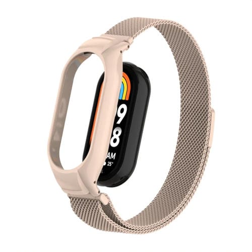 Caja de Metal Integrada + Banda Magnética Milanesa para Xiaomi Mi Band 8 (Rosa Loto)