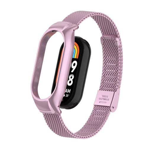 Caja de Metal Integrada para Xiaomi Mi Band 8 + Correa de Reloj con Hebilla de Malla de Acero (Rosa)