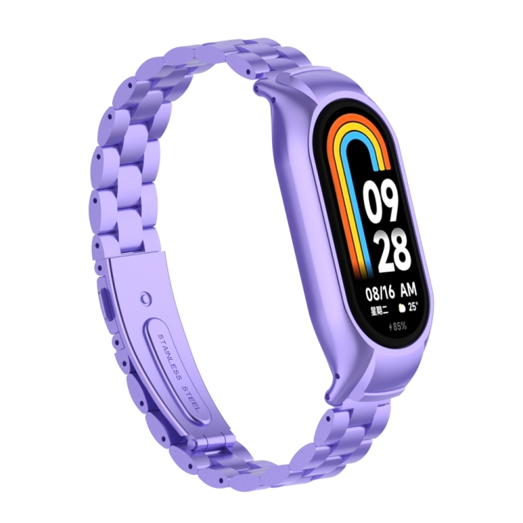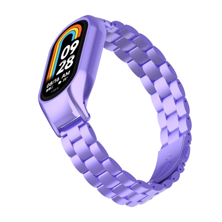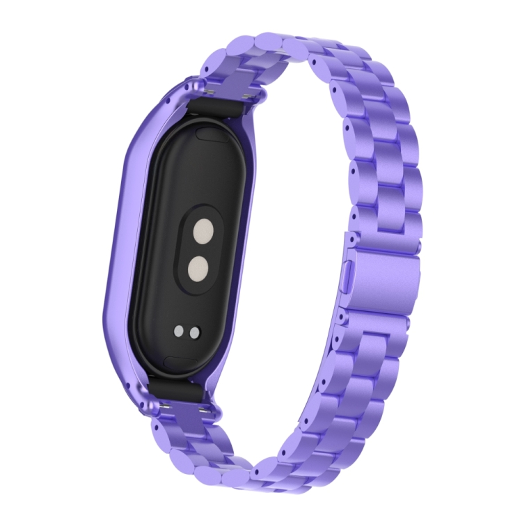 Estuche de Metal Integrado + Correa Tres Cuentas para Xiaomi Mi Band 8 (Hyun Purple)