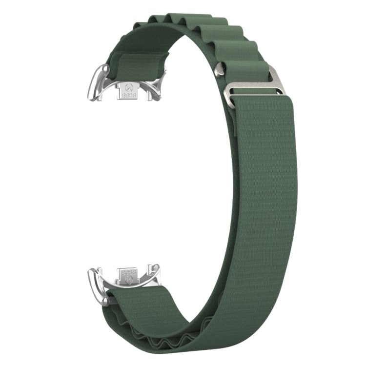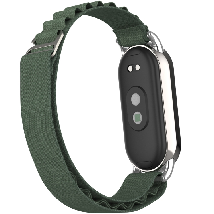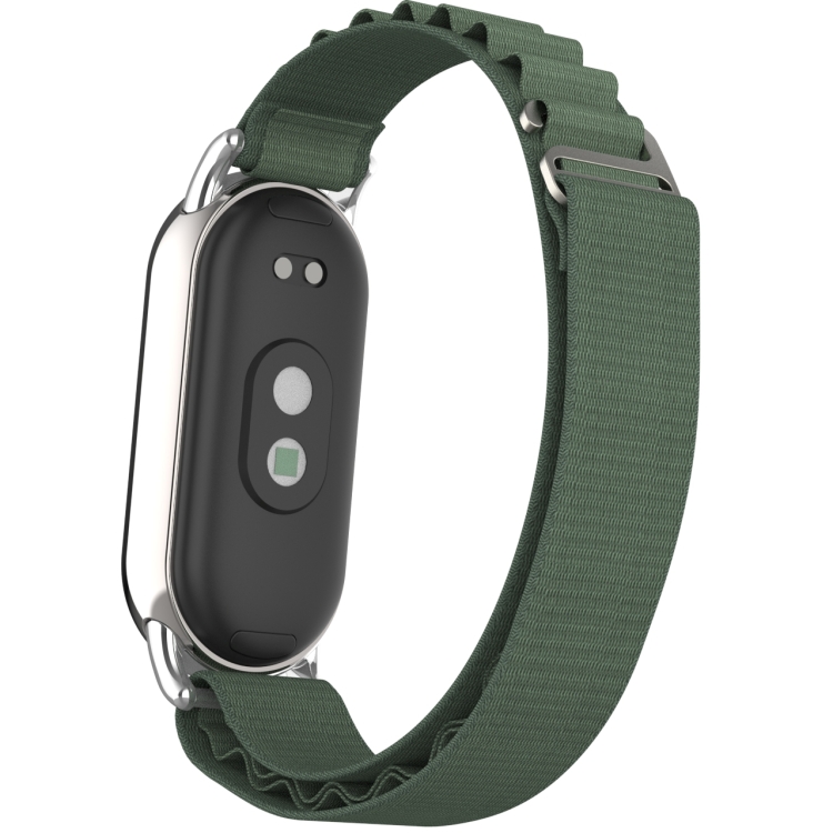 Pulsera para Xiaomi Mi Band 8 Metal Plug Loop Nylon (Plata y Verde Militar)